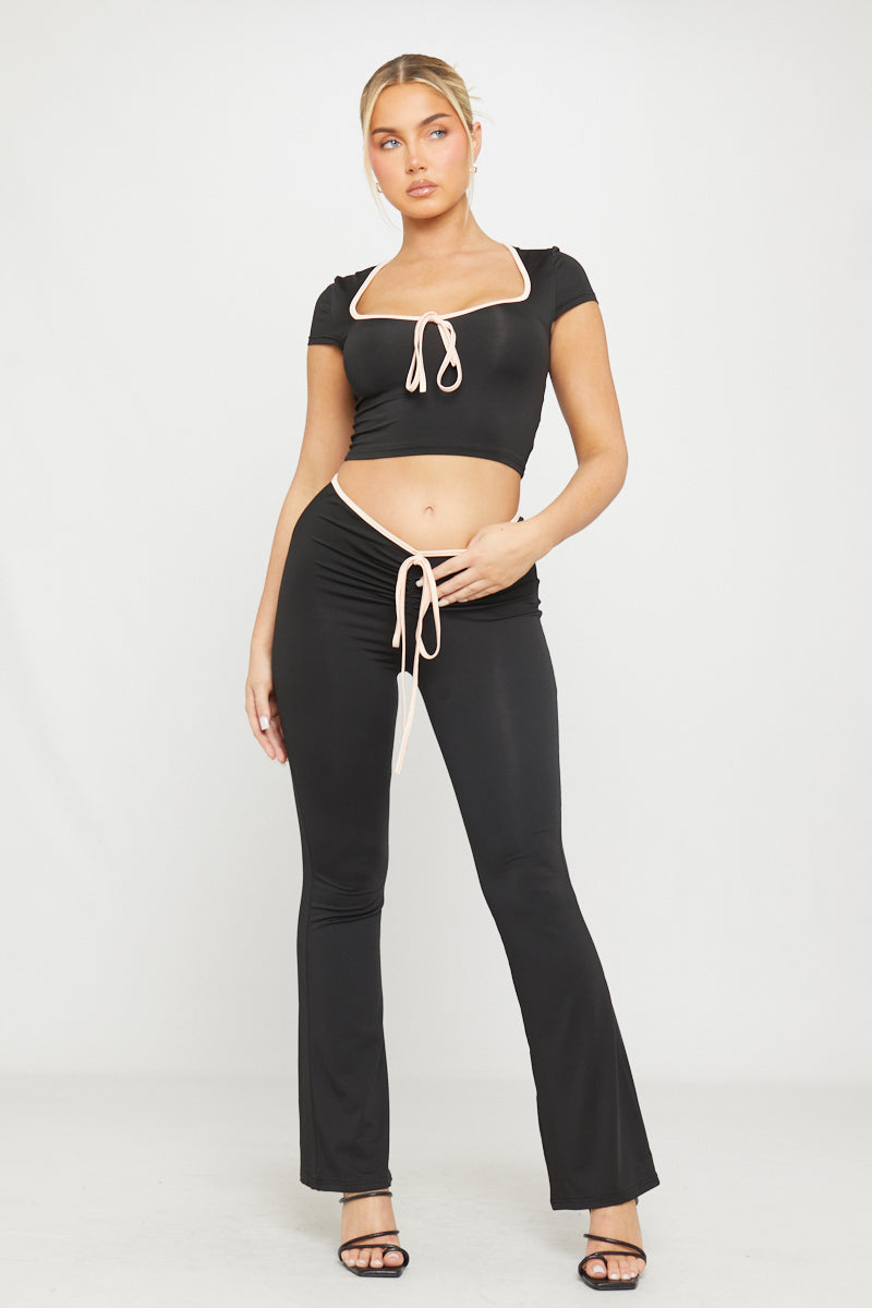 Black Halterneck Bow Detail Top and Skort Co-ord Set - Tiffany